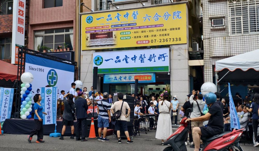 一品堂中醫六合分院的開幕典禮,除有熱鬧的舞獅表演外,還安排七賢國小學生打鼓隊的表演,純真震撼的鼓聲感染全場,象徵教育與公益,在愛心澆灌下茁壯。開幕當天也提供免費義診與健康諮詢,讓與會者不只收穫祝福,也感受到愛與健康。