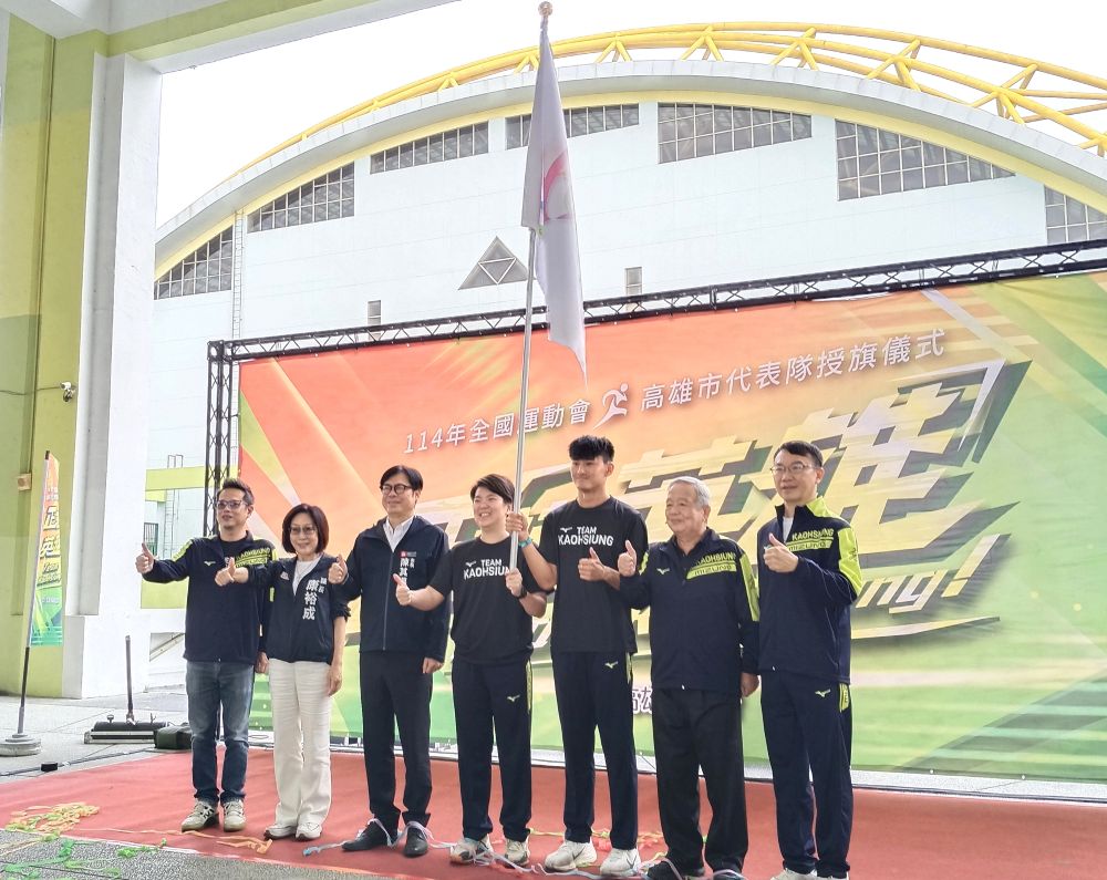 在1日的授旗儀式上,陳其邁首先揮舞市旗,授予代表隊總領隊、運動發展局長侯尊堯與體育總會理事長許文宗,再傳遞給射擊金牌選手李沛晴及跨欄金牌選手謝元愷。運發局說,截至9月底,高雄已奪得7金10銀10銅佳績,包括射擊25公尺手槍團體賽、雙不定向飛靶團體賽、25公尺快射手槍團體賽及空手道男子組個人對打第四級等。