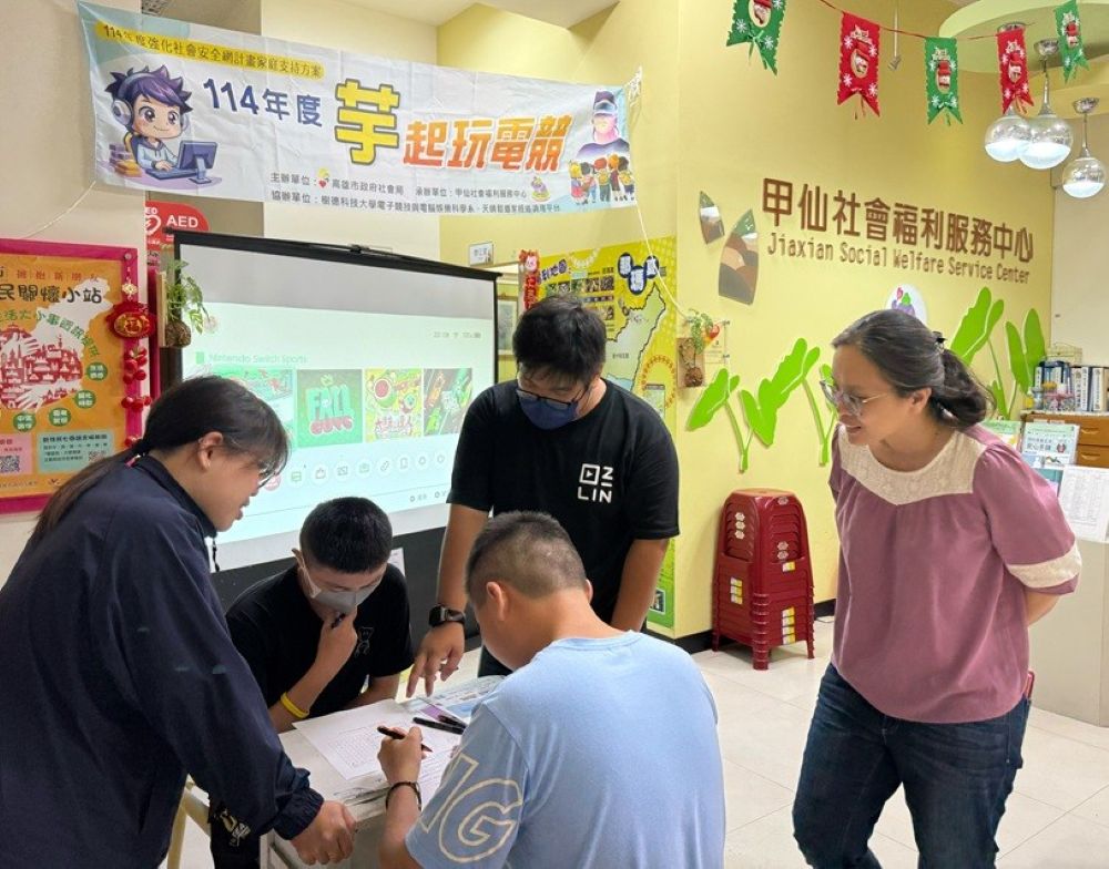 【記者吳峙嵩高雄報導】樹德科技大學電子競技與電腦娛樂科學系師生,日前走入甲仙社區,與甲仙社福中心攜手舉辦「芋」起玩電競活動,結合電競教育、親子互動與健康促進,將專業知識轉化為陪伴能量,落實大學社會責任。這項活動也獲社會局支持,結合強化社會安全網家庭支持方案,合力推動偏鄉家庭支持與社區共好。