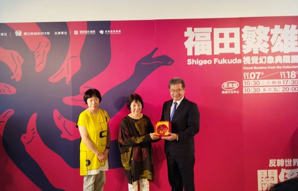 這場展覽最令人感動之處,高齡的福田夫人在其女兒陪伴下,特別從日本飛抵高雄出席開幕典禮,她致詞表示,感謝高科大對福田繁雄作品的珍視與保存,特別籌辦這檔展覽,讓其深刻感受台灣設計界,對福田精神的敬意與延續。