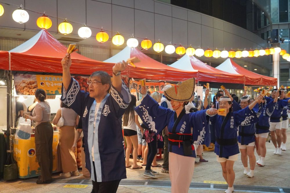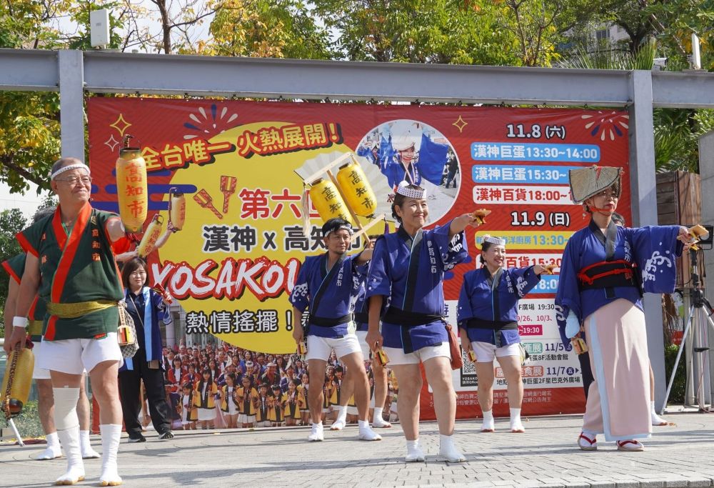 現場由高知市市長桑名龍吾帶領10位當地YOSAKOI專業舞者,同時漢神巨蛋購物廣場及漢神百貨兩店店長,也帶領眾多員工一同參與百人大遊行,還有萌世代舞團的小朋友,以及熱情參與的消費者,共襄盛舉。