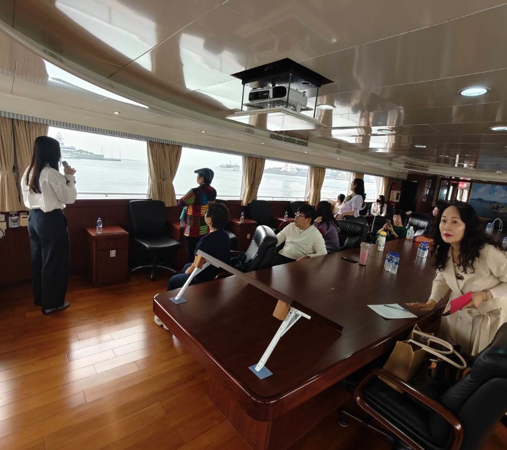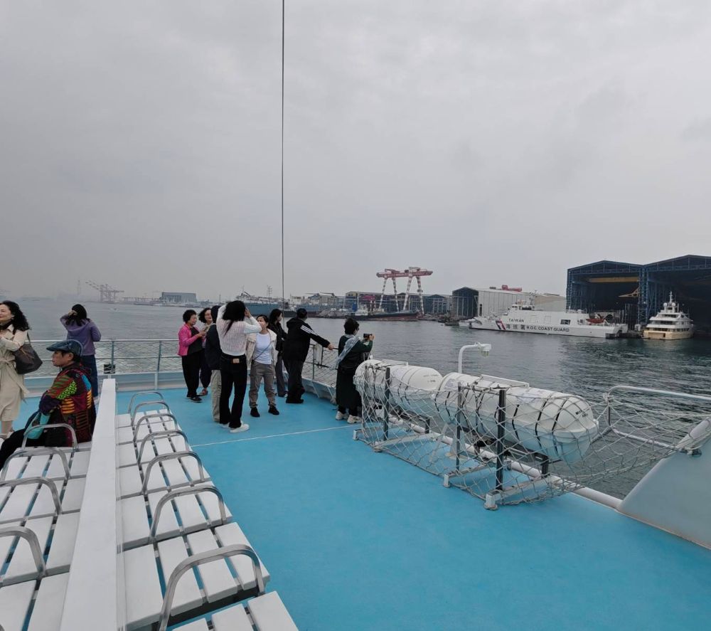 高港分公司並安排來訪的高雄空大師生,搭乘遊港船隻,沿途觀看各類碼頭的運作景象,包含貨櫃裝卸機具、修造船廠區及港區倉儲配置等,透過現場專業講解,更清楚了解高雄港的發展脈絡與全球海運中的角色。
