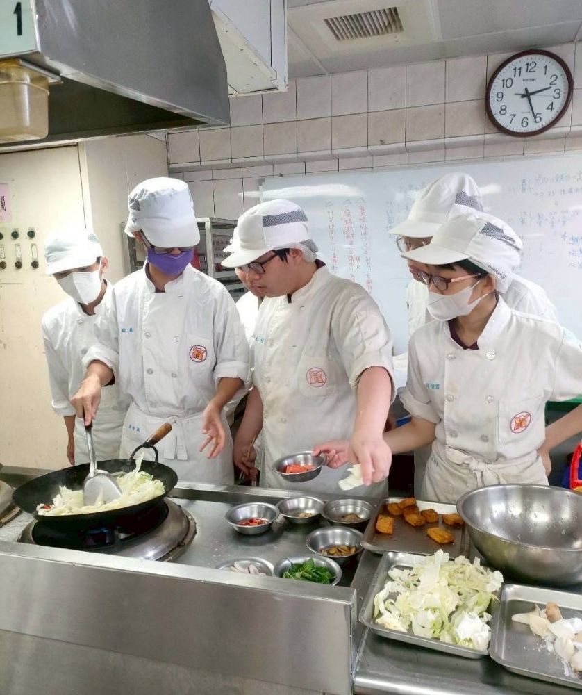 例如,在A.餐旅群科課程,含甜點製作與台味料理,像是巧克力戚風蛋糕、葡萄奶蓋星球、三杯雞、拔絲地瓜及手作黑糖珍珠等,呈現餐旅與烘焙科的實作優勢。