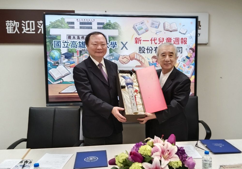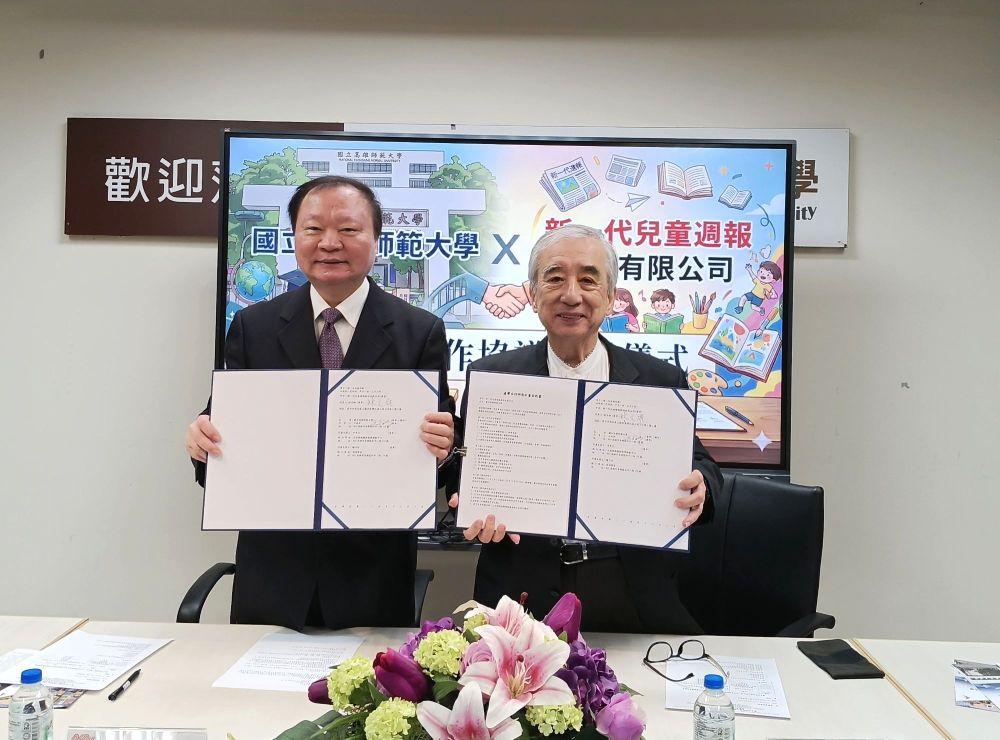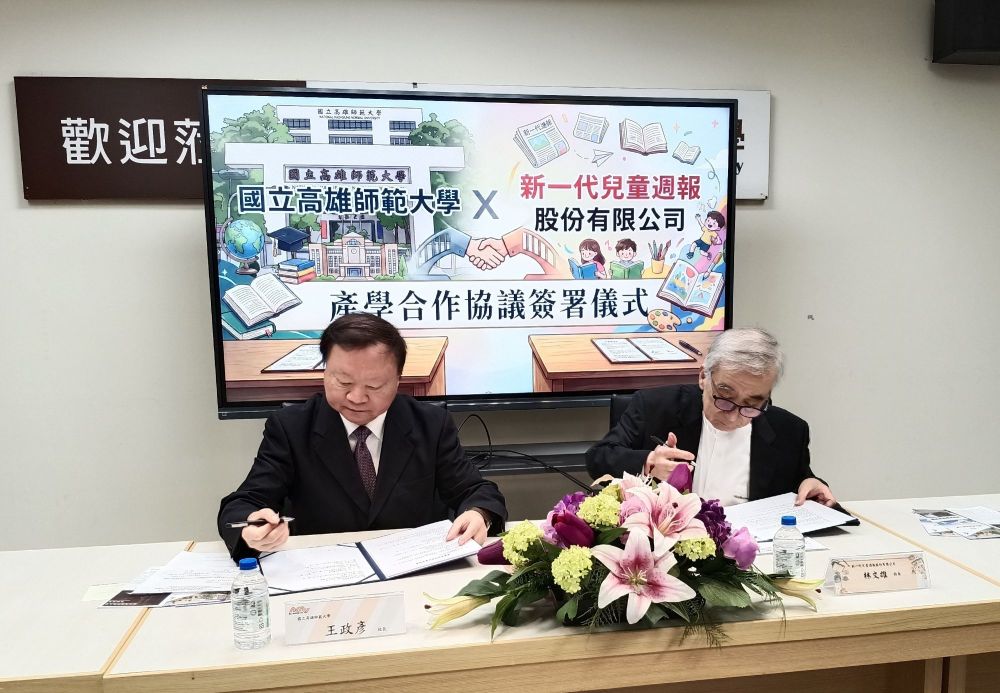 【記者吳峙嵩高雄報導】為推廣適合兒童的閱讀媒材,並提供高等教育服務觸角的延伸,新一代兒童週報股份有限公司與國立高雄師範大學,特為此強化雙語教育在地化推廣、教育媒體合作、學術內容共製及人才培育等項目的產學連結,雙方8日簽署產學合作協定,共同出刊「高師大新一代雙語兒童週報」,向下扎根閱讀風氣,並提升社會整體雙語素養。