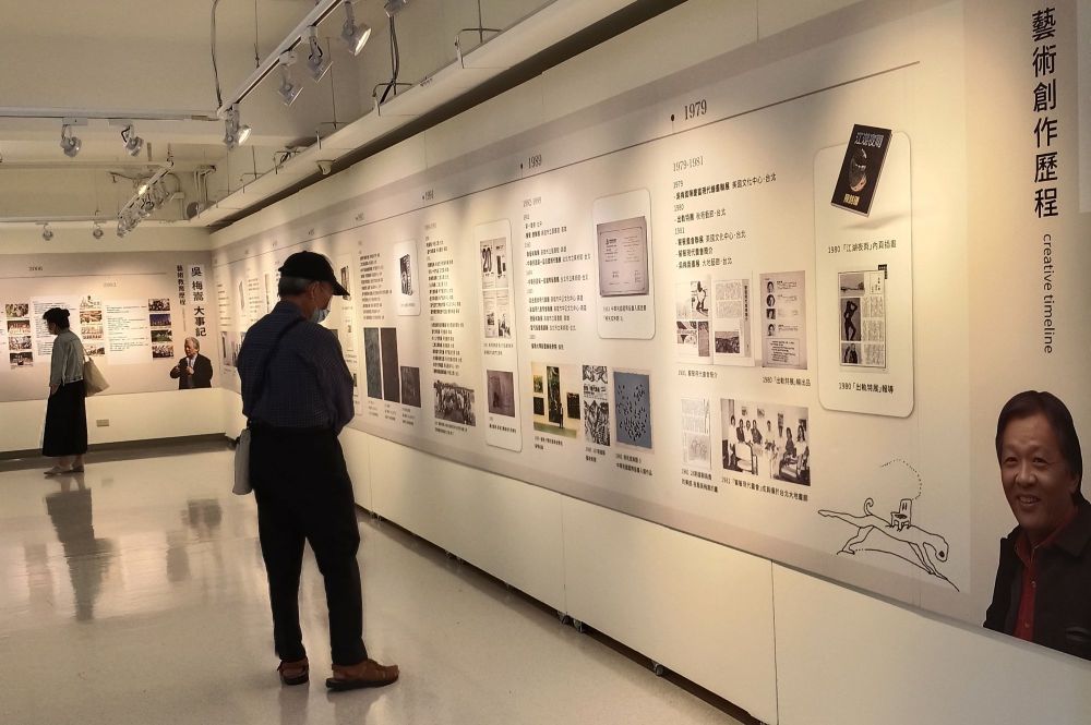 吳梅嵩紀念展會場有其創作暨教育年表。(記者吳峙嵩攝)