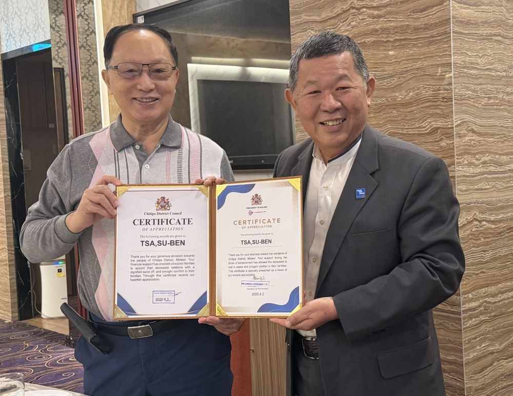 今年元旦,施鴻森帶來馬拉威國會頒給曹賜斌的感謝狀,「感謝您捐助馬拉威貧困人士死後靈魂得以安息,家族得以安慰,特頒此狀以示感謝」,令曹賜斌感到驚喜不已,亦期待能拋磚引玉,讓愛心無國界,傳播到世界各個角落。