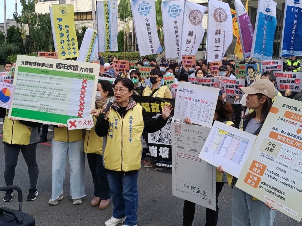 高雄市獨立總工會理事長王慶宏也說,站在工會的立場,對於市府承諾保障原大同員工的權益,一年後檢視完全跳票,譴責高市府「醫療崩壞、勞權傷害」,尤其總統賴清德、市長陳其邁及衛生局長黃志中,三人都具備醫療背景,卻忘恩負義,不顧醫療人員權益,讓人心寒。