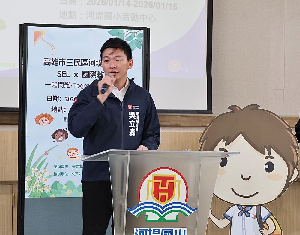 吳立森並說,河堤國小做為高市推動社會情緒學習的中心學校,自今年起,正式肩負市級示範與推廣的重任。115年開春,該校結合文藻外大的外語教學系資源,透過簡易英語引導學生表達情緒,並設計闖關活動,讓孩子在輕鬆、有感的學習情境中,培養自我覺察與同理他人的能力,充分展現SEL與國際教育融合的實踐成果。