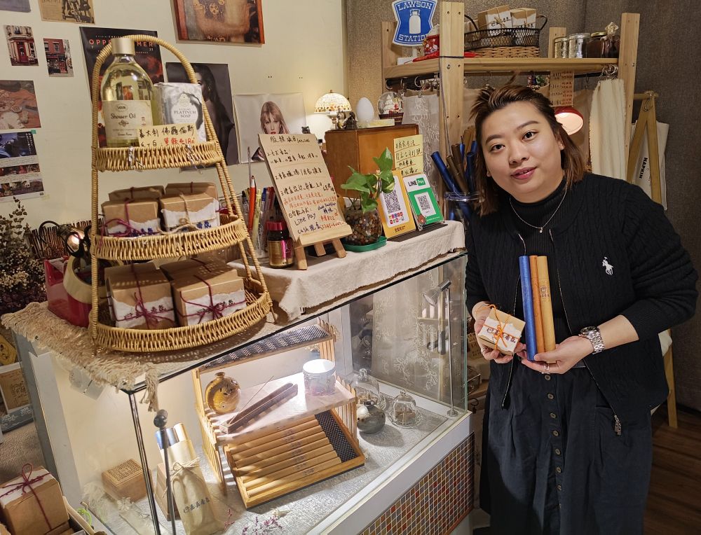 【本報綜合報導】在充滿文青氛圍的鹽埕第一公有零售市場內,竟有一家販售香氛的店家,格外與眾不同。嘉嘉香氛業者宣嘉幃表示,她從事美容銷售,常接觸東方香品,感覺對工作壓力大者,有心靈療癒功能。因年節將近,特推出不含香精且天然原料的檀香、沉香用品,簡單素雅包裝,值得推薦做為年節送禮新選擇。