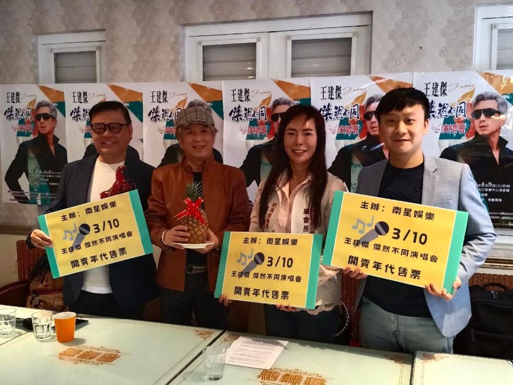 王建傑演唱會10日票券開賣當天,主辦單位南星娛樂特召開記者會,大高雄市觀光商圈總會長陳慧玟也特別到場支持,與南星娛樂董事長楊耿明,也是這次演唱會總導演,一起送上鳳梨和俊馬等吉祥物,預祝王建傑票房馬到成功,一路旺旺旺。